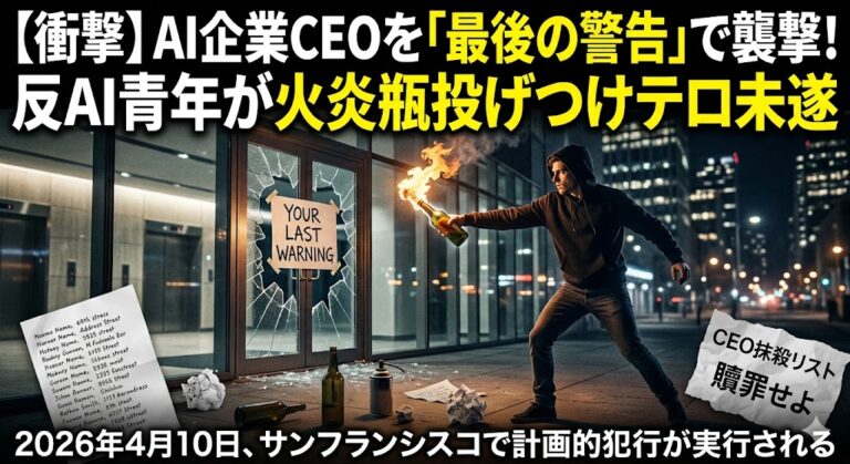 ■ AI企業CEOを「最後の警告」で襲撃!反AI青年が火炎瓶投げつけテロ未遂