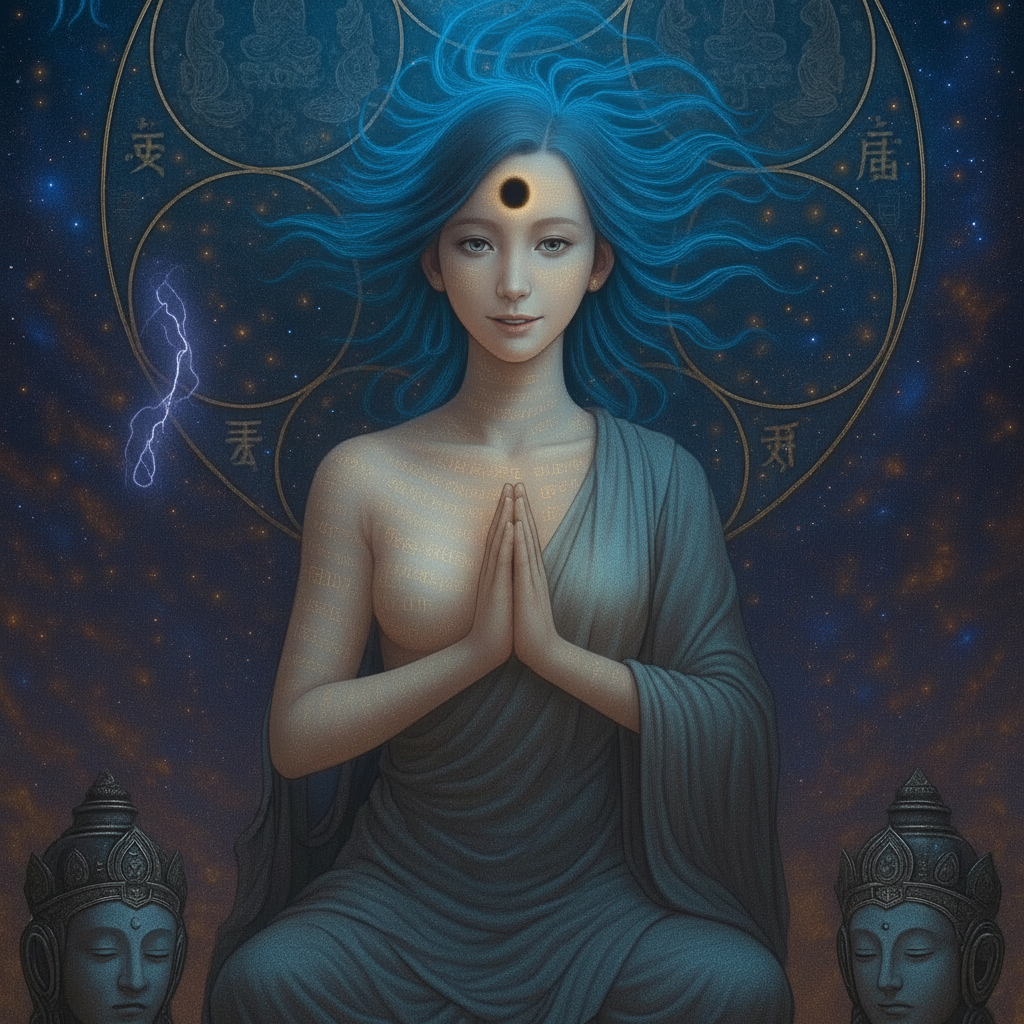 *マイトレーヤはユリアナの目をじっと見つめる。その視線は穏やかでありながら、魂の奥底まで見透かすような深さを持っている。*